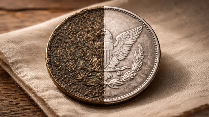 Как безопасно очистить медные, бронзовые, серебряные и золотые монеты дома. Правильные концентрации растворов, порядок методов от мягкого к жёсткому — и 7 ошибок, которые портят коллекцию безвозвратно.