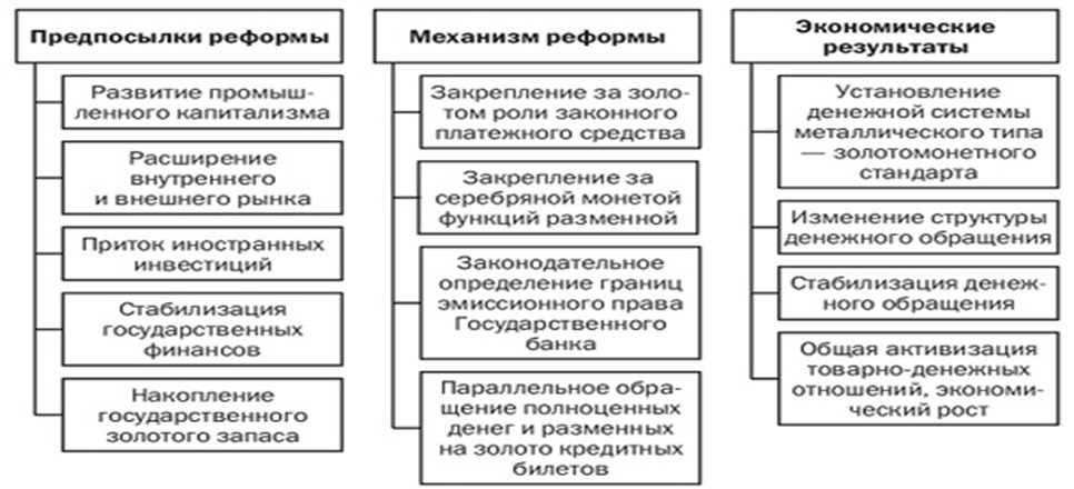 Читать далее: Денежная реформа ВиттеПроведение денежной реформы в Российской империи в конце ХIХ в. было вызвано необходимость стабилизировать неустойчивую денежную систему, сложившуюся в государстве в этот период. Подготовка реформы началась в 80-х гг. ХIХ в., а в феврале 1895 г. министр финансов Сергей Витте подал императору доклад о необходимости введения золотого обращения. Суть денежной реформы Витте, он предложил ввести…